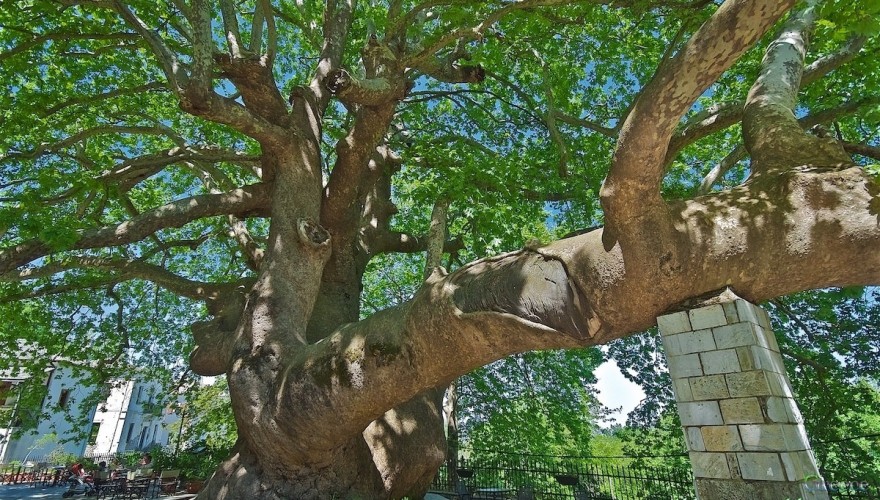 In Agion Taxiarhon square the celebrated water fountain with the four taps where the water runs continuously. The age - old plane tree gives life to the famous Pelioritic hydrangeas with its shade.